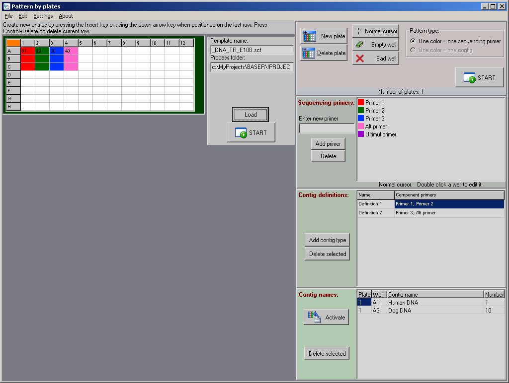 In our case, you should click on the first well. The coordinates of this well will be added in the ‘Contig names’ box. All you have to do is to complete the rest of the fields